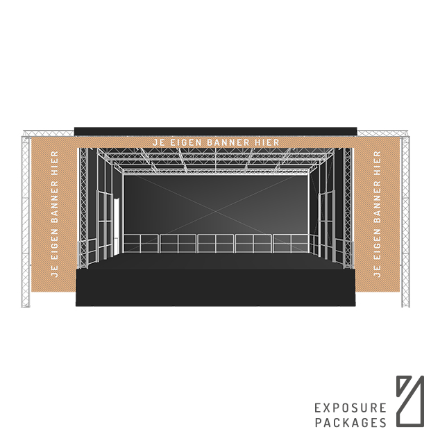 Banners voor in de PA Sidewings & aan bovenzijde van Stage 61.
